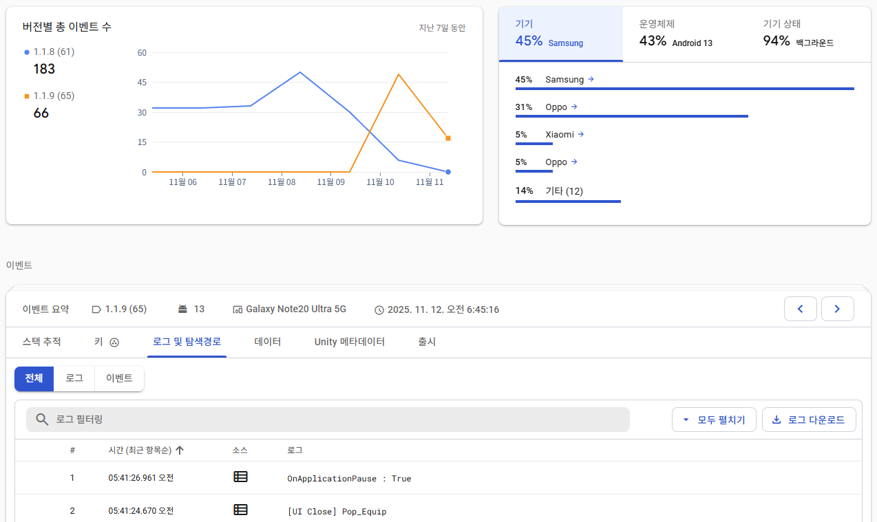 저희가 심어놓은 로그로 확인해 봤을때. 게임이 중간에 Pause상황에서 간혈적으로 빈번하게 해당 이슈가 발생하는듯 합니다.
