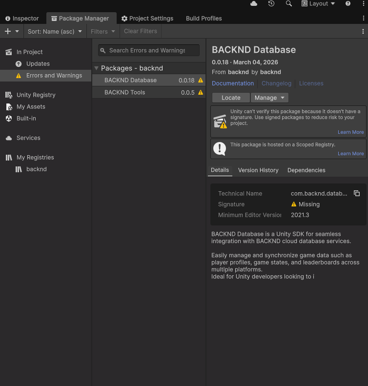 해당 패키지가 Unity에서 제공하는 서명된 패키지(Signed Package)가 아니기 때문에 표시되는 안내 메시지입니다.