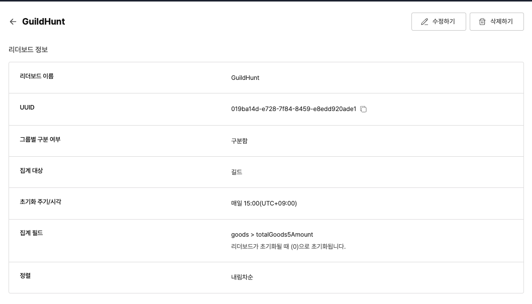 리더보드의 집계필드는 정산 시에, 정산 대상에 한하여 초기화됩니다.