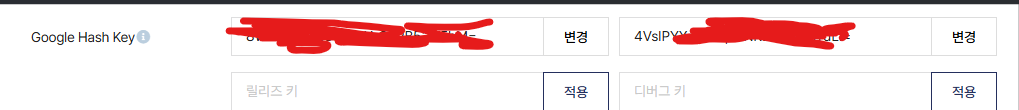 뒤끝 보면 릴리즈키 디버그키 1개씩 추가입력할 수 있게 되어있어서요.