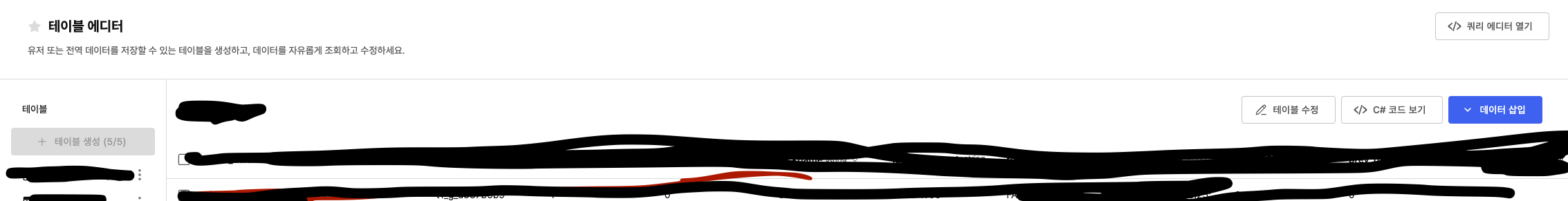 추가로 문의해주신 데이터베이스 검색 기능은 테이블 에디터 내에서는 제공되지 않으며,